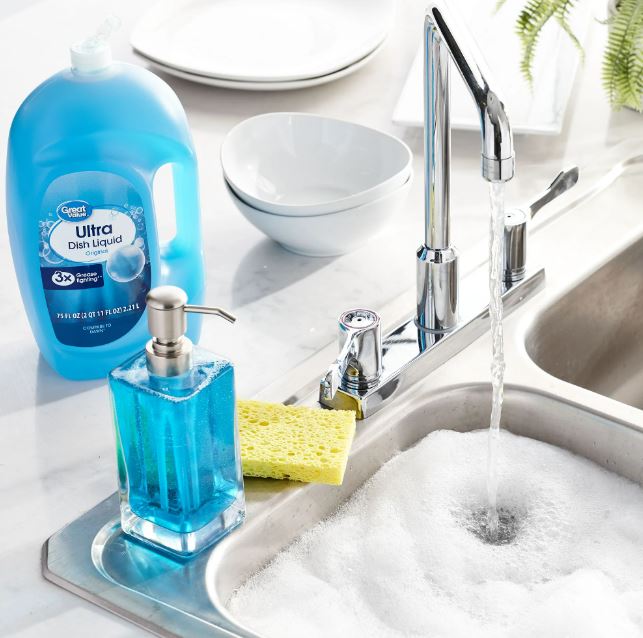 Great Value Ultra Original Dish Liquid has triple the grease fighting power, making cleanup of your dirtiest pans and dishes a breeze! This formula has earned the U.S. EPA’s “Safer Choice” designation, so it is safer for human health and the environment than other formulations. Squeeze this concentrated dishwashing liquid into warm water to make quick work of greasy plates, glasses, baking dishes, pots, and pans. The 75-fluid ounce bottle features an easy-grip handle that makes it simple to fill up your sink soap pump or use right out of the bottle. Great Value Ultra Original Dish Liquid is the go-to choice for safe, effective, and affordable dishwashing liquid.